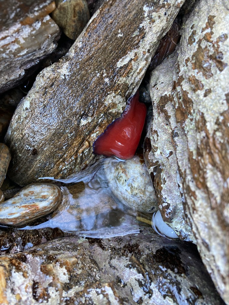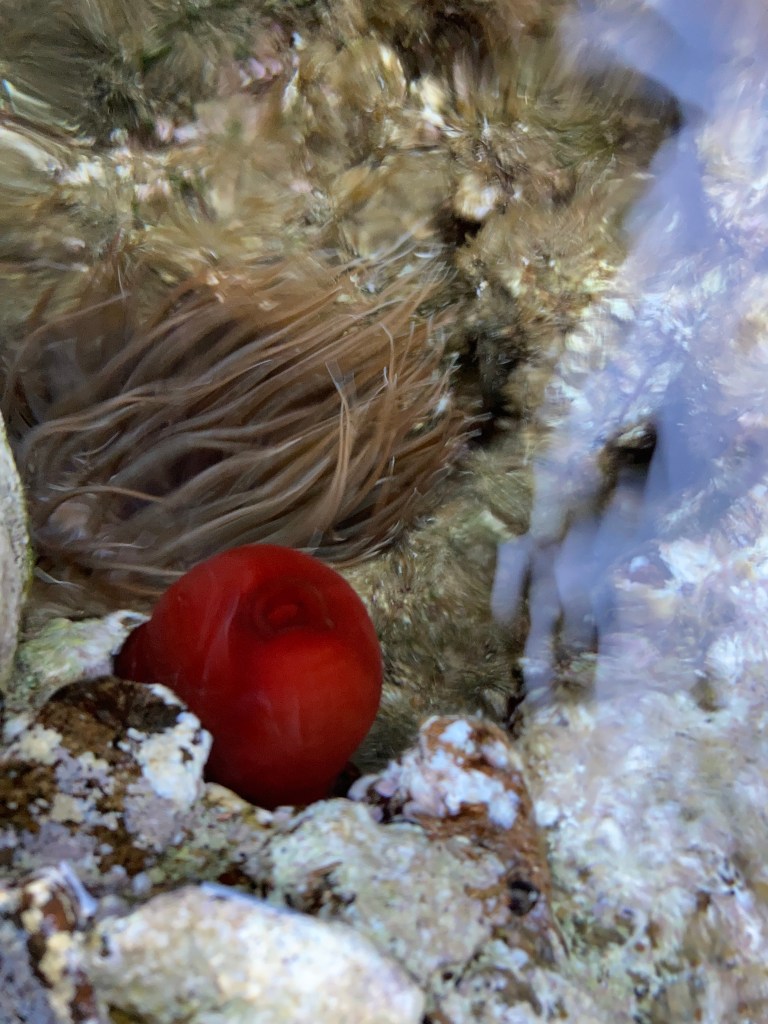 This beach is not the easiest to swim maybe but if you like exploring nature you are going to love it here! Search for anemones!!! You can find quite easily sea tomatoes (actinia mediterranea). But there could also be some beadlet anemones (actinia equina) – it is difficult to tell which one is which. These anemones retract their tentacles when exposed to air and do not like direct sun.