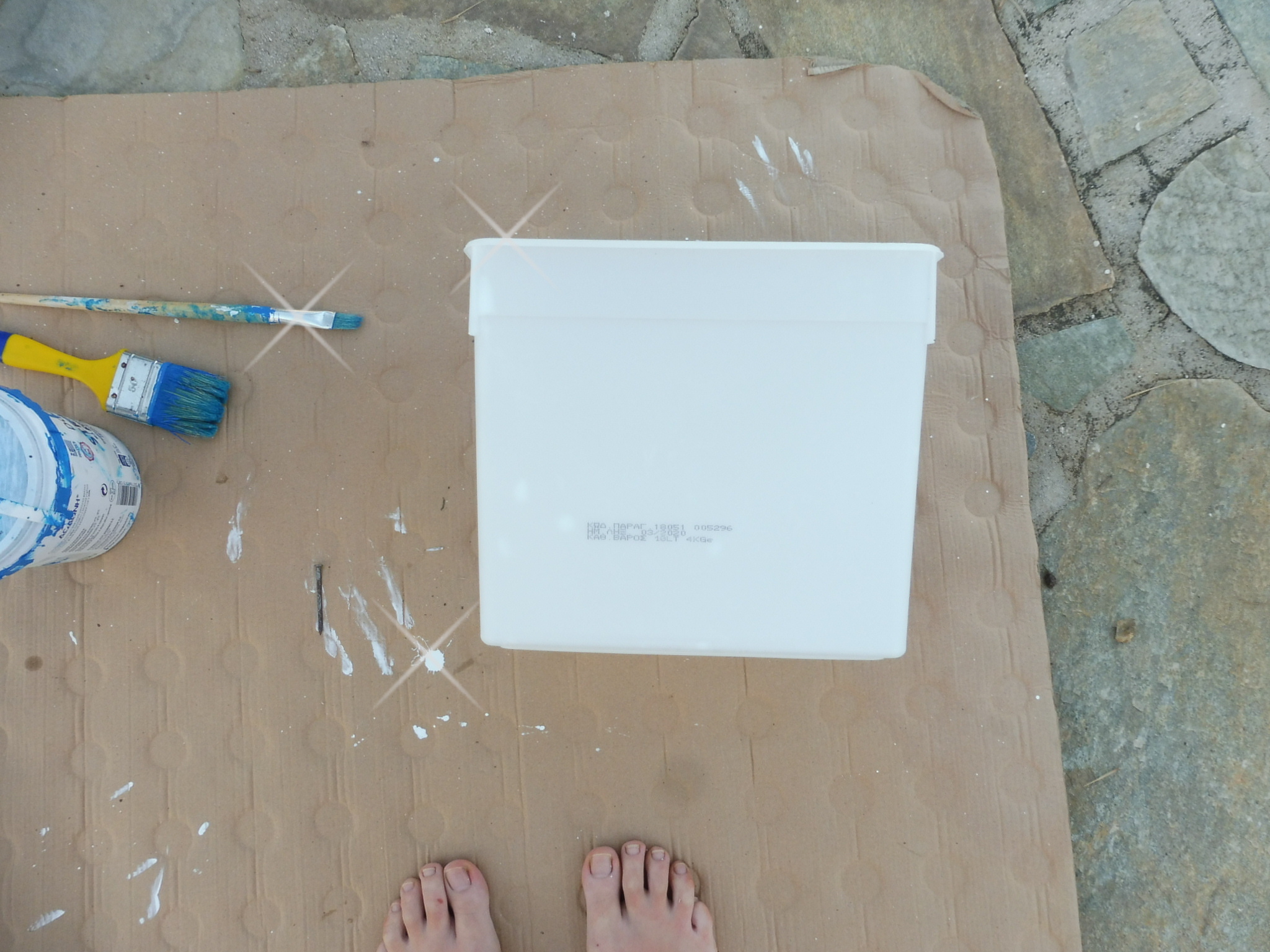 After transforming the palette into a pot for herbs we painted some plastic boxes.