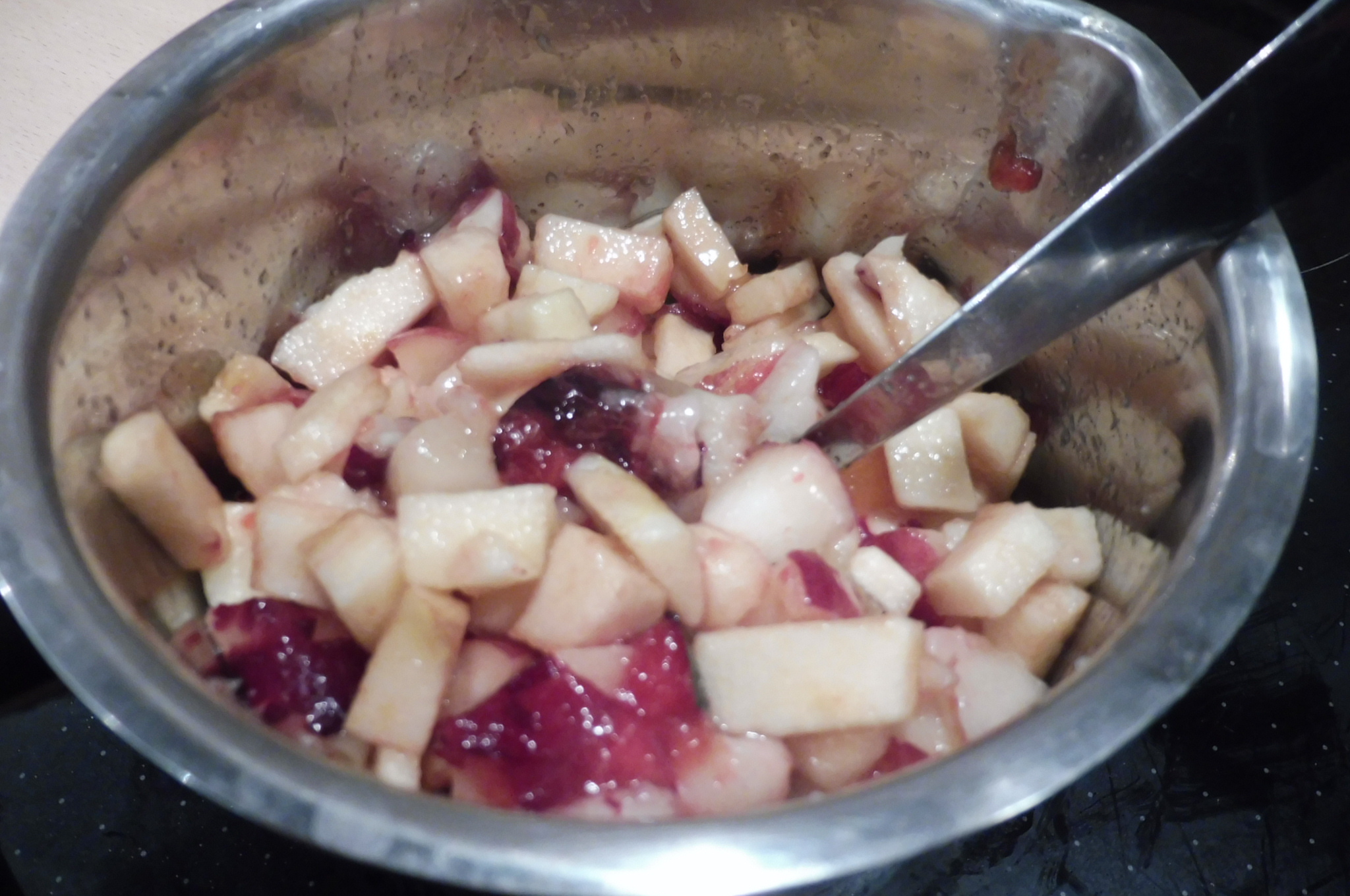 I used the fruit that you can see in the fotos and I added only 2 table spoons of sugar. I let them boil, in the end I added a bit of lemon and then i put them in a clean glass jar. I didn’t sterilize it and that is why I say that it must be eaten very soon!