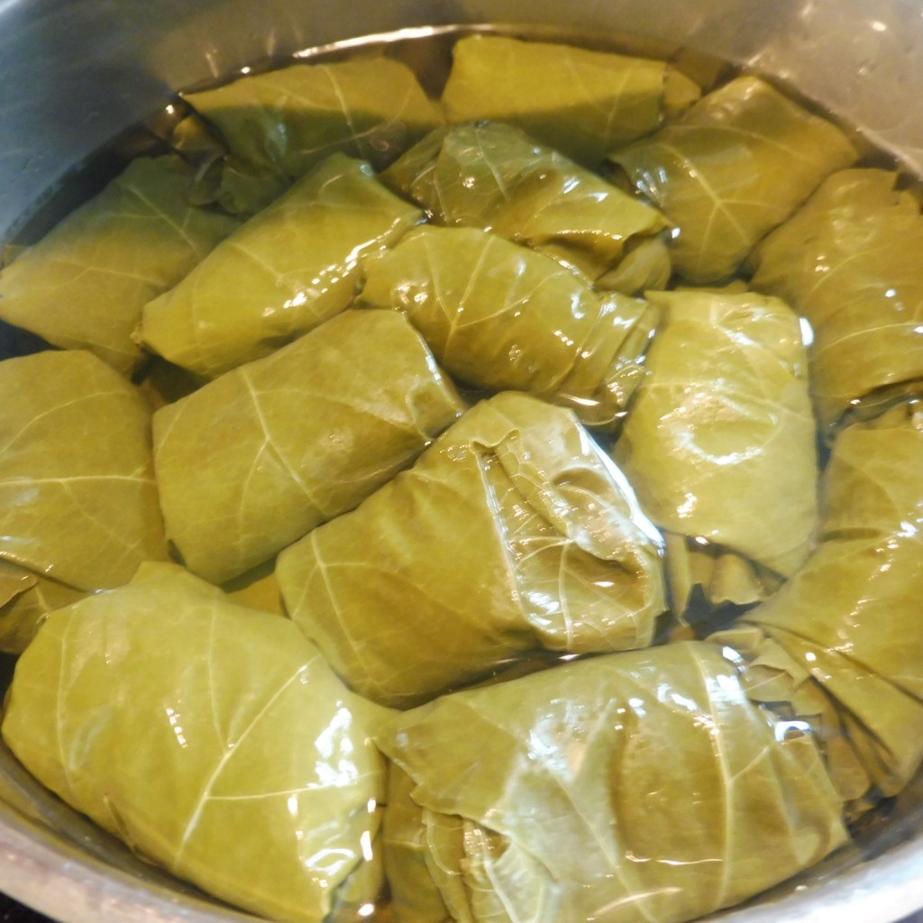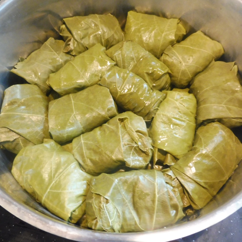 - 30 very big vine leaves (they were before being boiled 230gr) plus some of the damaged or the ones you needed to cut for the bottom of the pot