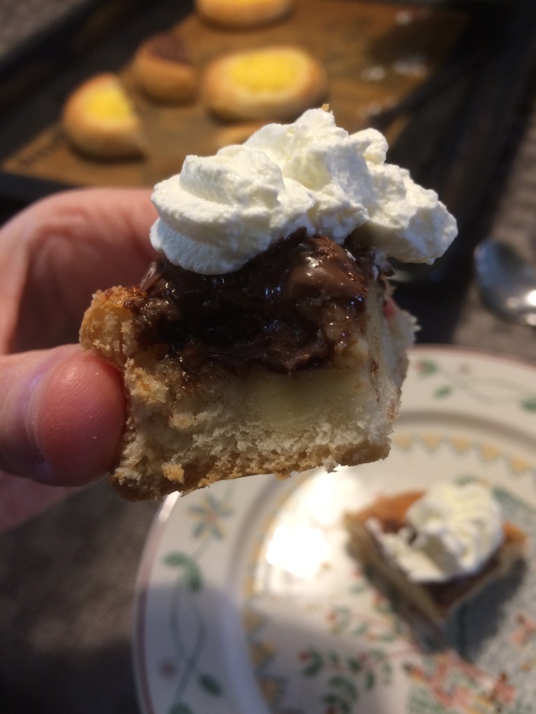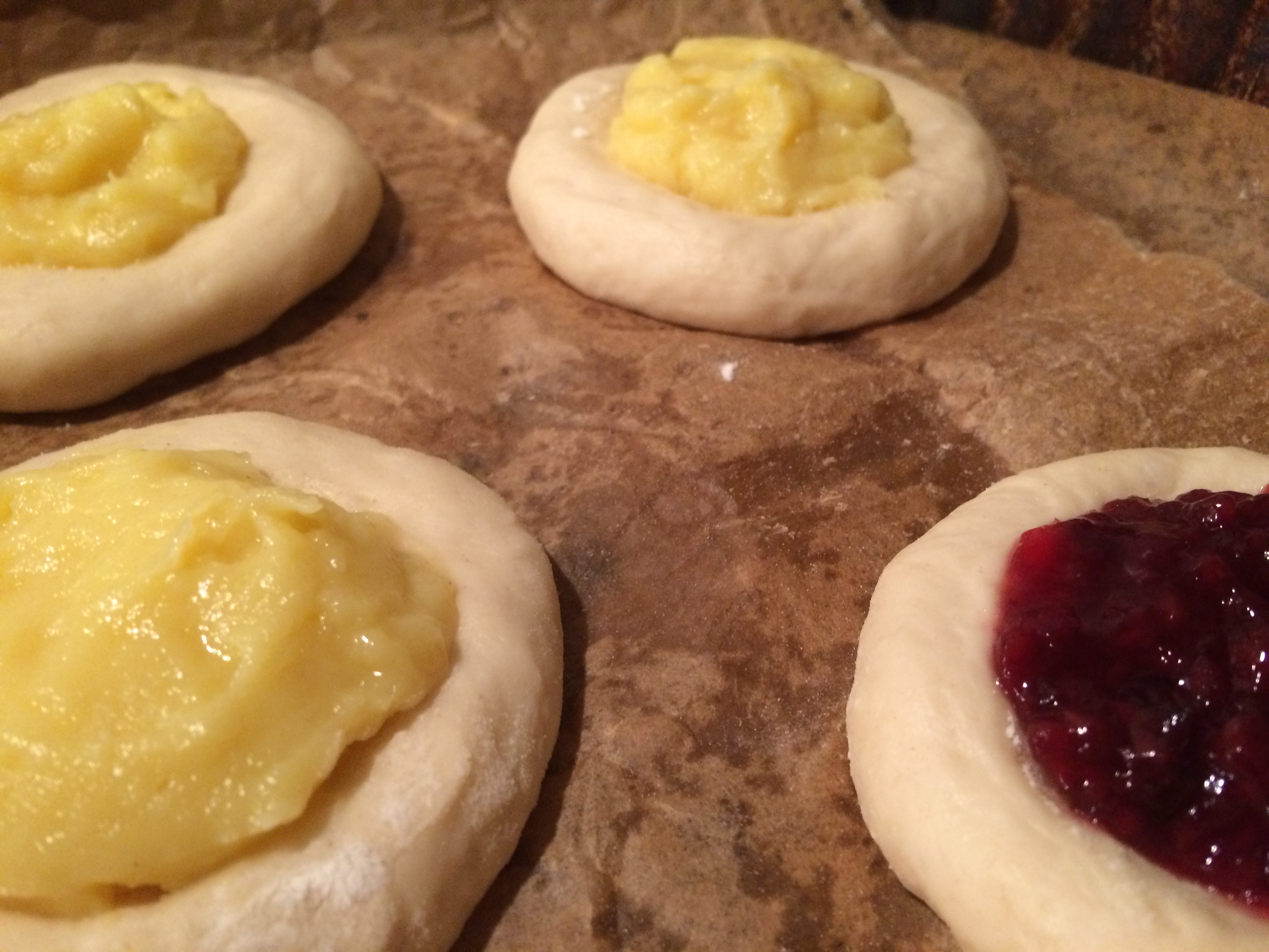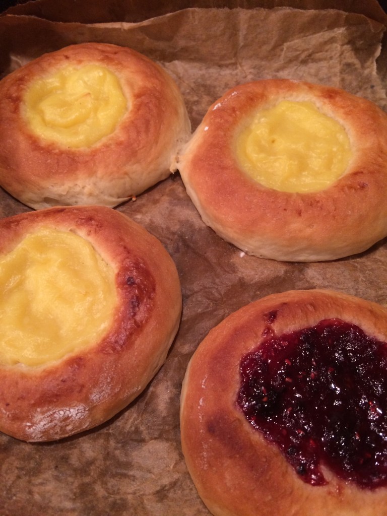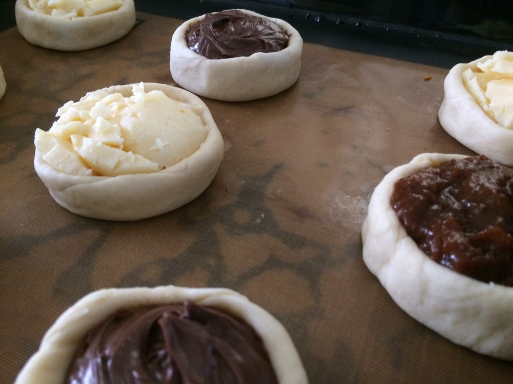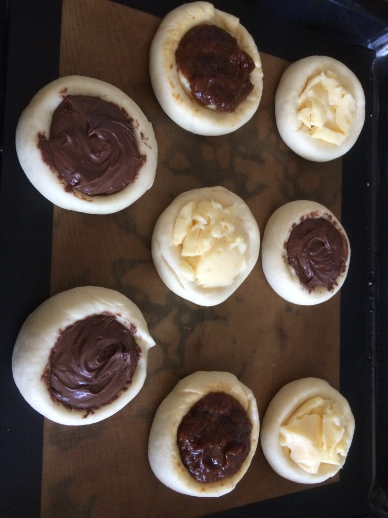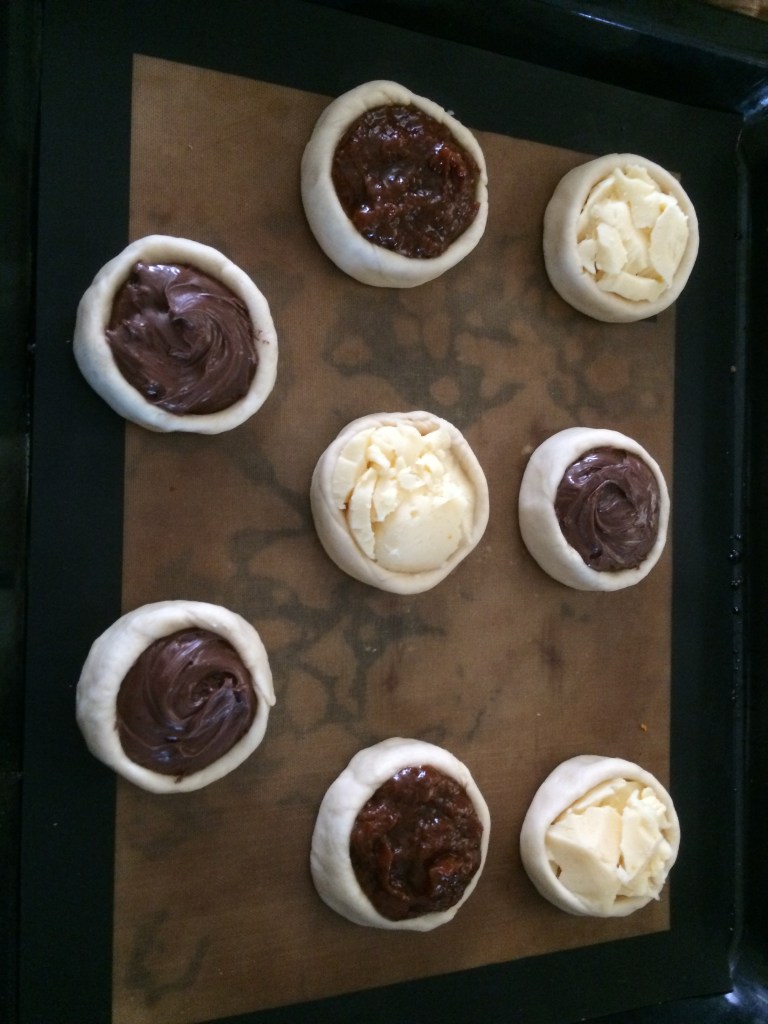 All the above are with dry yeast and the below are with fresh yeast and with higher walls, which worked better and I could put more filling.