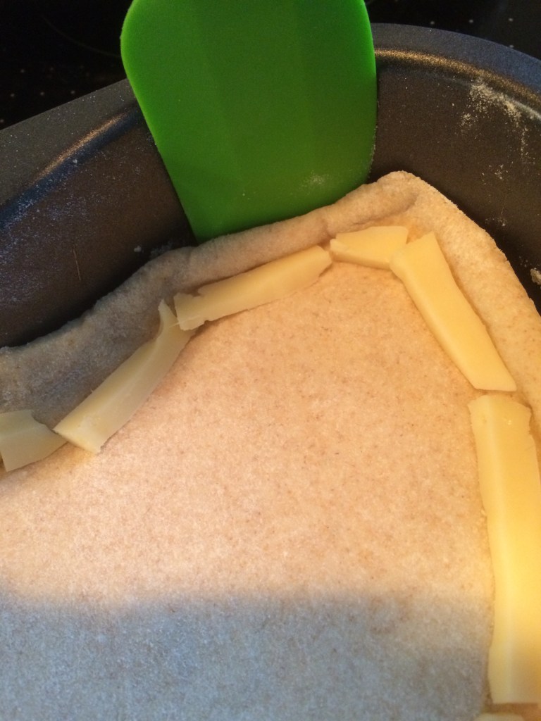 - Place the pizza dough in a buttered and floured pan and leave also a vertical wall (at least 1,5cm)
