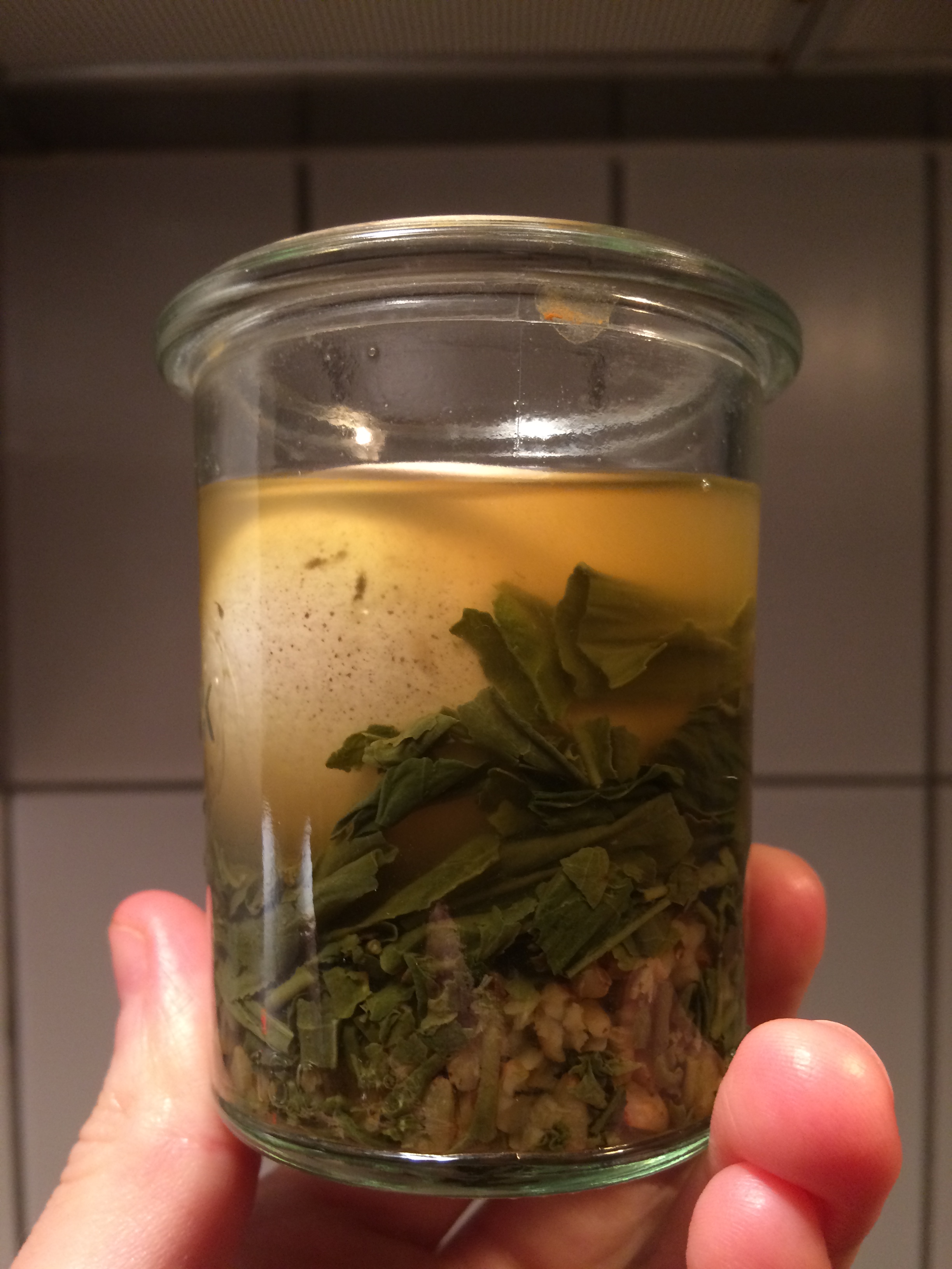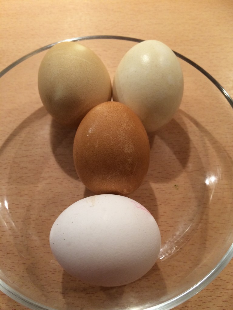 The 2 first fotos are from the macha tea and the third one (on the right) the one with the mint tea. I didn´t use fresh mint. Maybe this can make a difference. Or if you smash the fresh mint and place it around the egg…