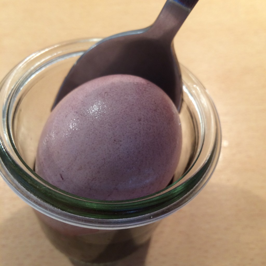 But if you leave the eggs in the red wine for a n hour or so, you will get the color below – a beautiful purple!