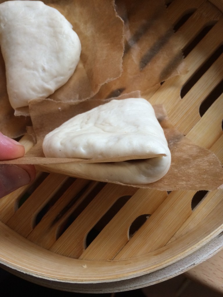 - Divide the dough in 4 pieces and put it directly to the place you are planning to steam them on top of a parching paper