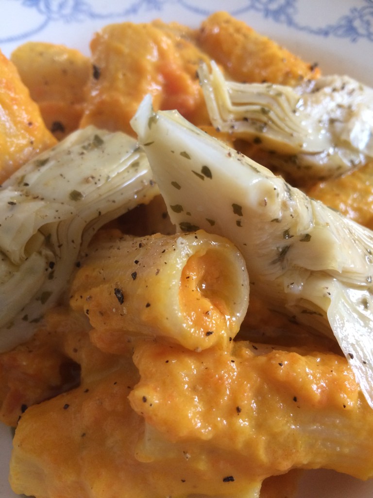 Let´s leave the fresh tomato sauces for the summer and turn to carrot sauces in winter! You can use it for pasta like in the foto or for veggies/grissini/bread/chips for a nice aperitivo