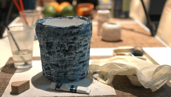 - Lastly, we have the fun part, the painting. You can do anything you want. For my pot planter, I used oil paint and did this technique with the sponge. Easy fast and beautiful.