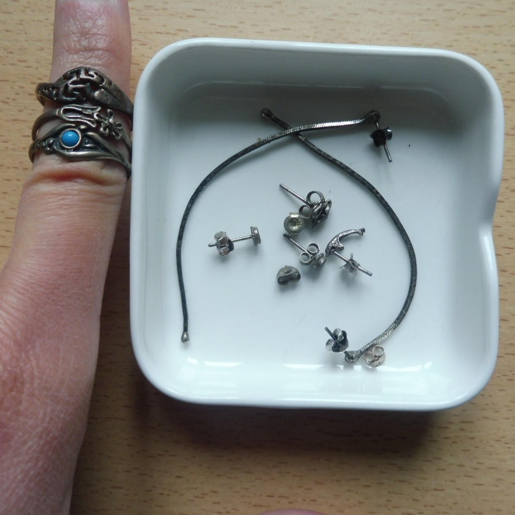 - Better not to clean this way jewelry with stones, but as you can see in the fotos for me it worked