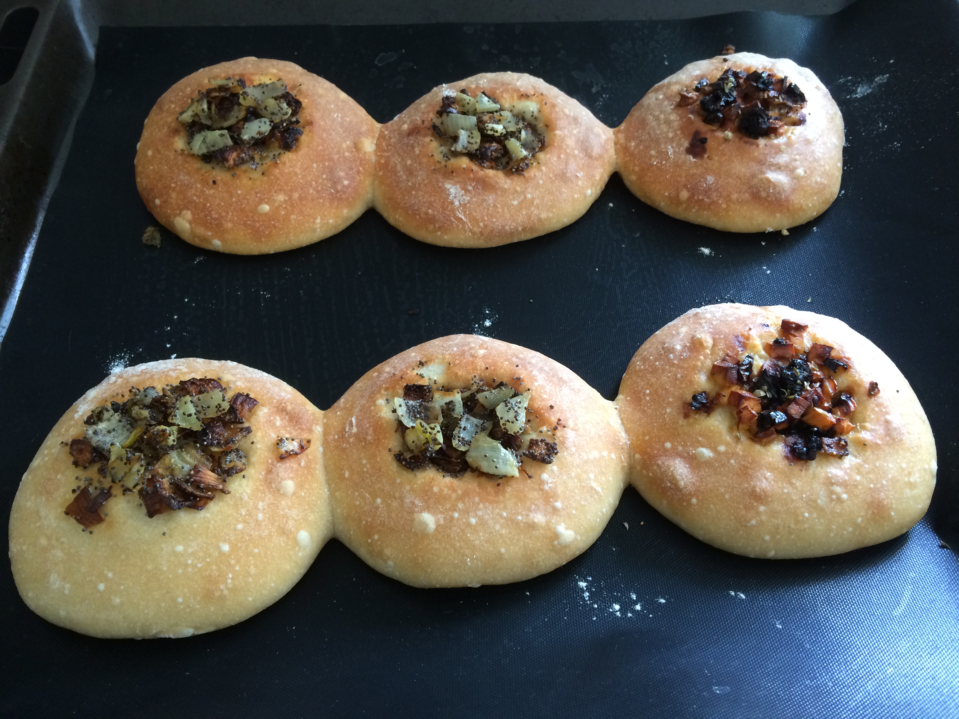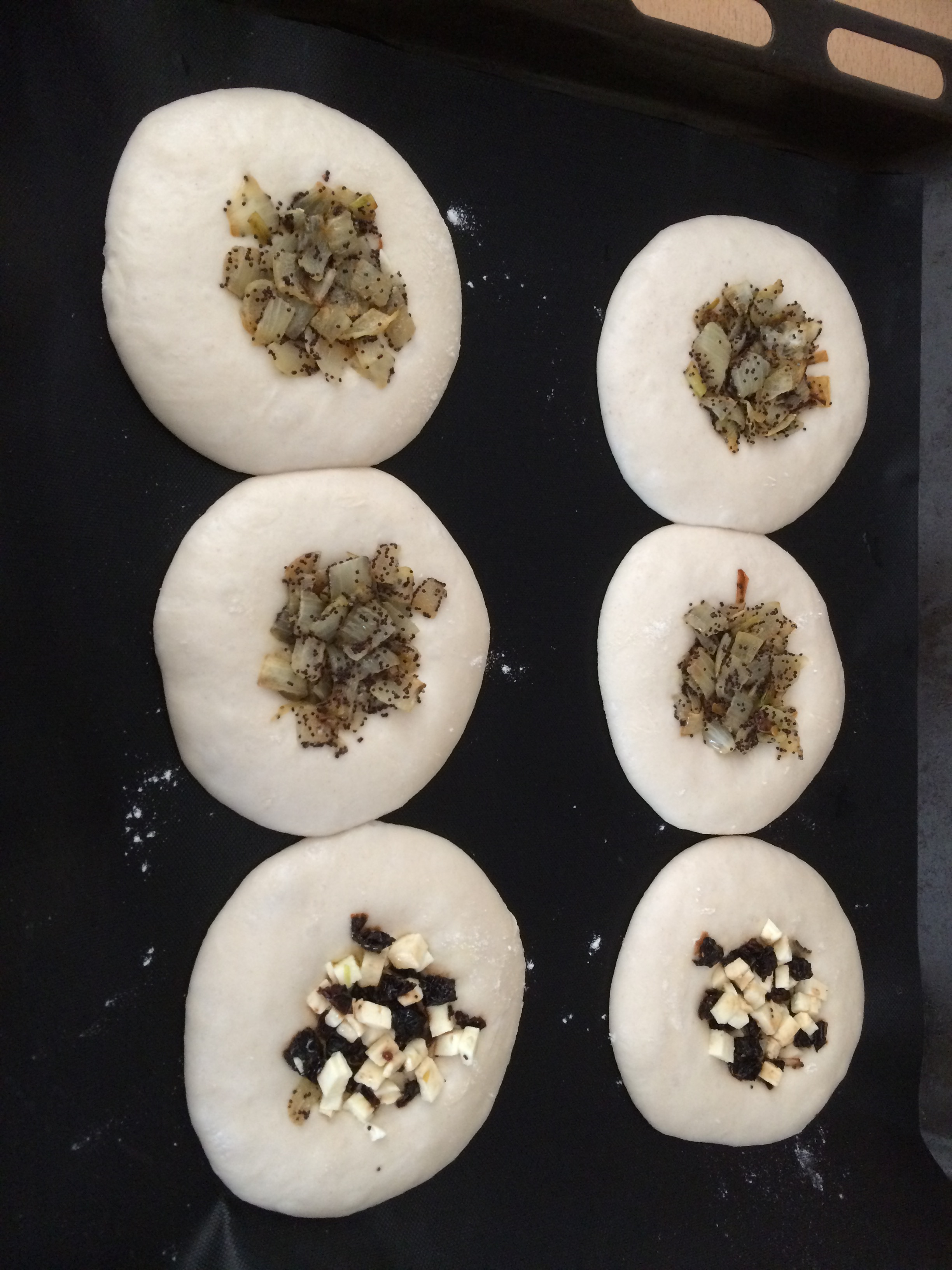 They look a bit like bagels but they are not. The original recipe comes from Poland and the name resembles to the name of the city they come from (Bialystok). Traditionally they are filled with onion and poppy seeds. They are directly baked and not first boiled like bagels.
