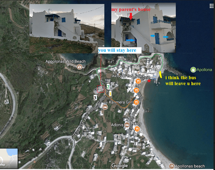 Going through the orange path, if you look back, you will see the main beach of Apollon.