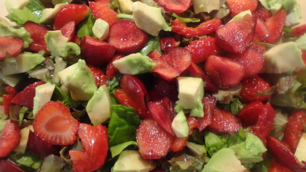 - Salad leaves for 2 people (whatever salad you have – we used from our balcony: spinach, red swish chard, red leaf salad, baby purple kale, baby collard greens)