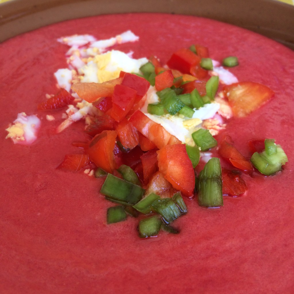 - If it is too thick, add cold water – you want the texture to be like a soup. If it is too thick it is in the side of salmorejo actually, that the recipe is about to come!