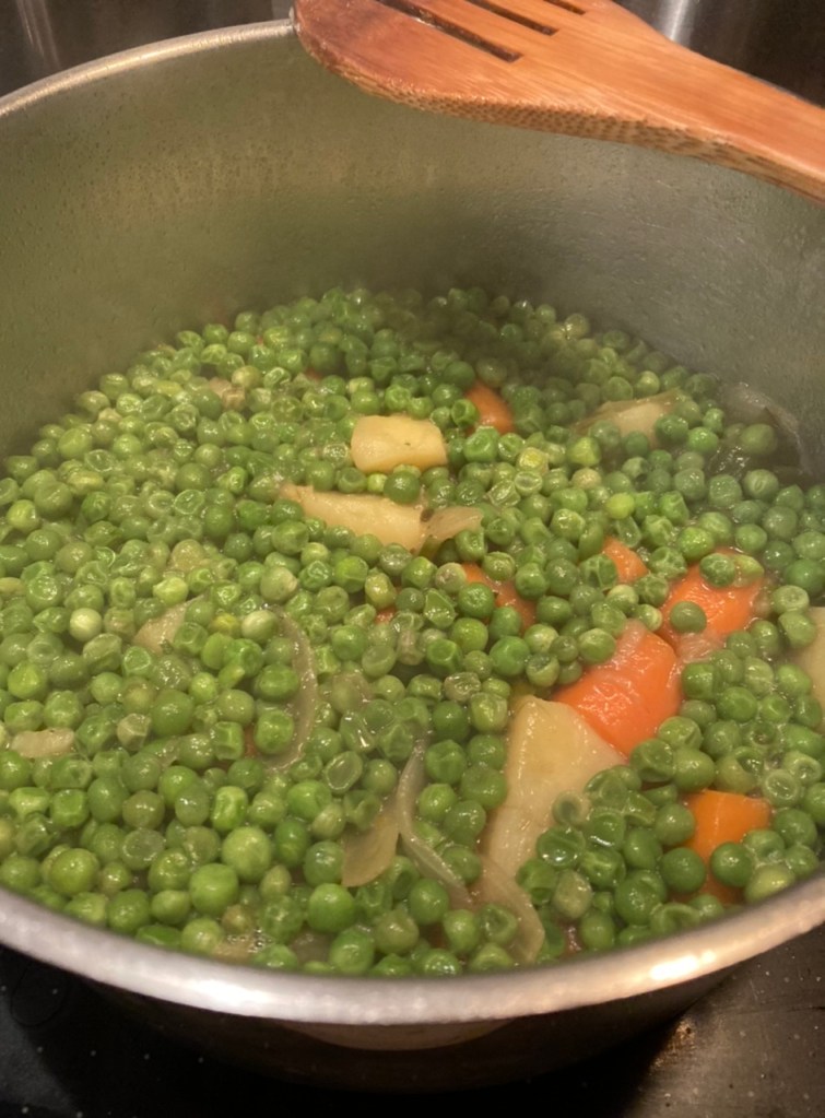 - Cook them for around 20 minutes and before they are completely cooked, add the peas and cook from 5 to 10 minutes more according to your taste and how hard you prefer (taste it and decide if you wish to cook it more)