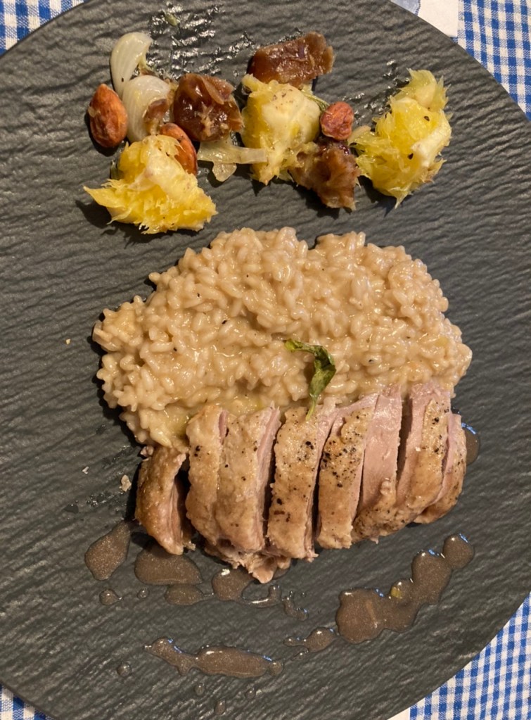 - Optionally you can add a bit of dark chocolate (1 bite) and corn flour in the juice of the duck and like this you will have a quick sauce