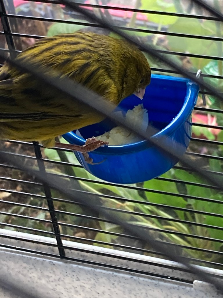 Our canaries really enjoy having egg. We cook it for 10 minutes in boiling water and then we give them a small part every day.