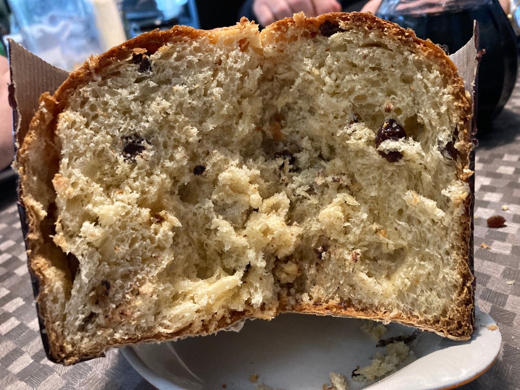 - Make a cross on the panettone and add a spoon of butter