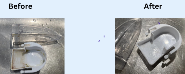 However after coming back from holiday or if you do not have this daily habit of thoroughly checking and cleaning the water container, you can come up with a not so nice water container. Below a video with the before and after of the water container after holiday.