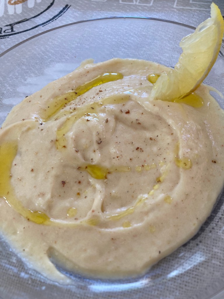 - Serve with a bit of olive oil on top and with bread, pitas or grissini