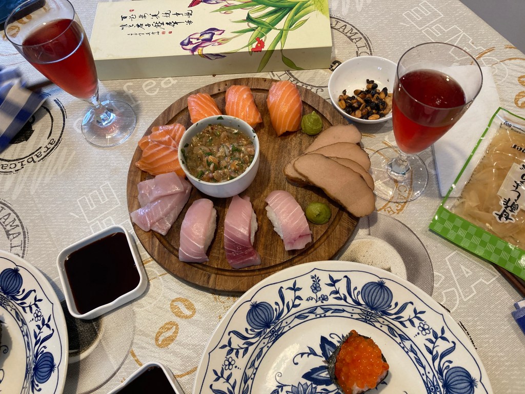 For the foto above we got salmon, swordfish and smoked fish eggs (but this is really optional and maybe weird but we do like them a lot).