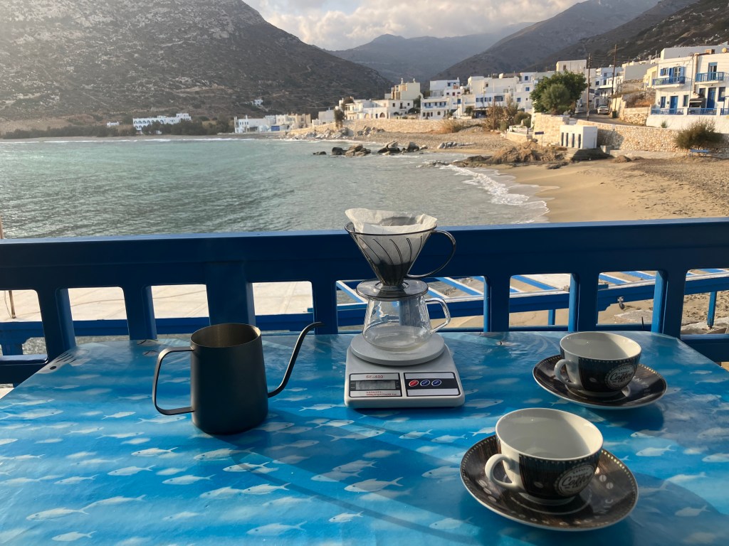 In our places at Naxos we have a filter/drip coffee machine but also a manual dripper, in case you wanna do some pour over. Of course you have as well and ibrik and always coffee grounds to make a greek coffee.