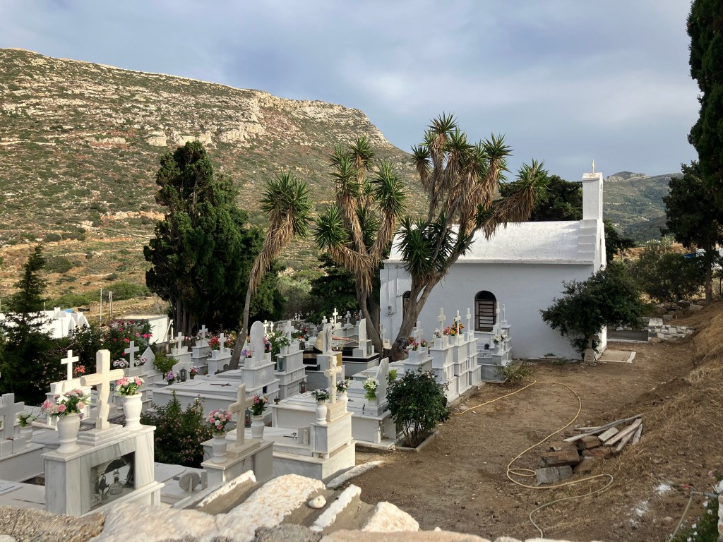 This is also a typical Greek church, white and blue with a cross on its highest point. This church is not celebrated like the main church, cause also the cemetery is located there.