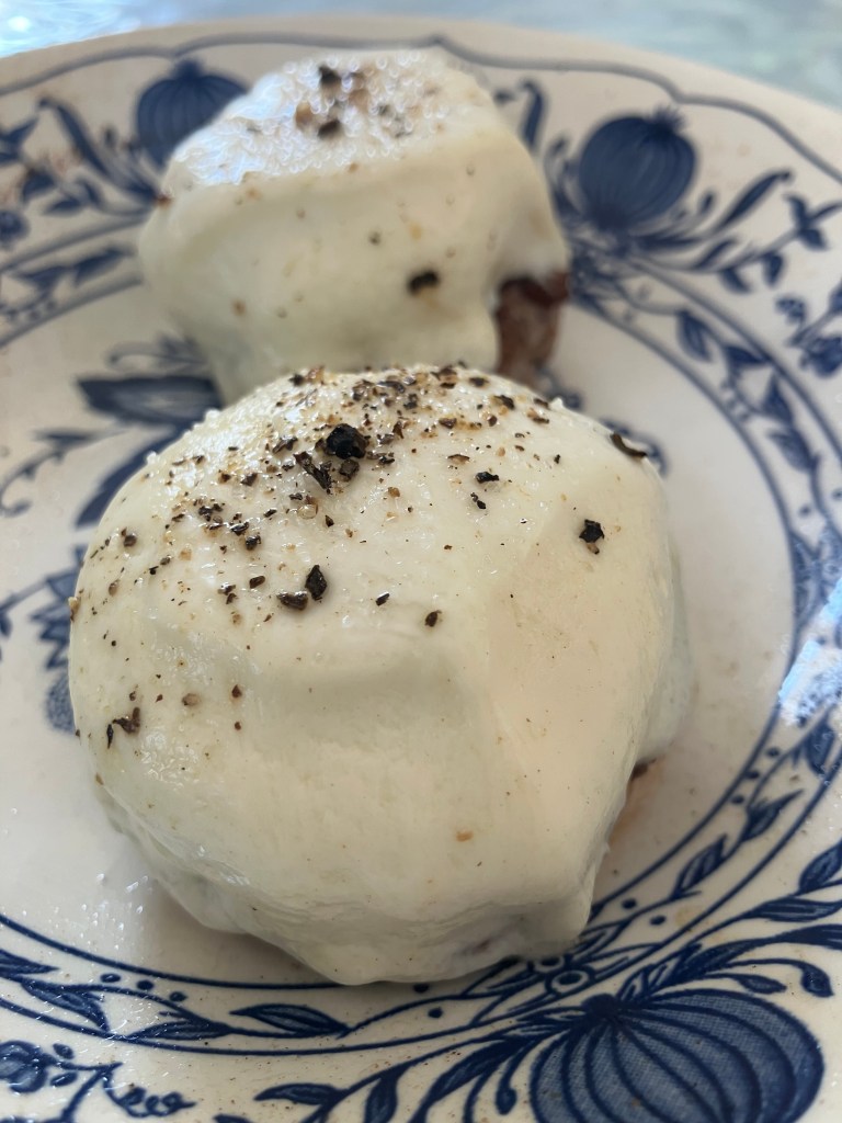 Our side dish that day was boiled vegetables! With extra virgin olive oil and freshly grounded pepper on top.