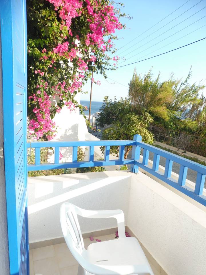 The house in Apollon, Naxos has 2 rooms, a bathroom with a bathtub and two balconies. The first room when you enter is the living room/kitchen and from there you can access the balcony with the sea view. The second room is the bedroom and from there you have access to a second balcony with…